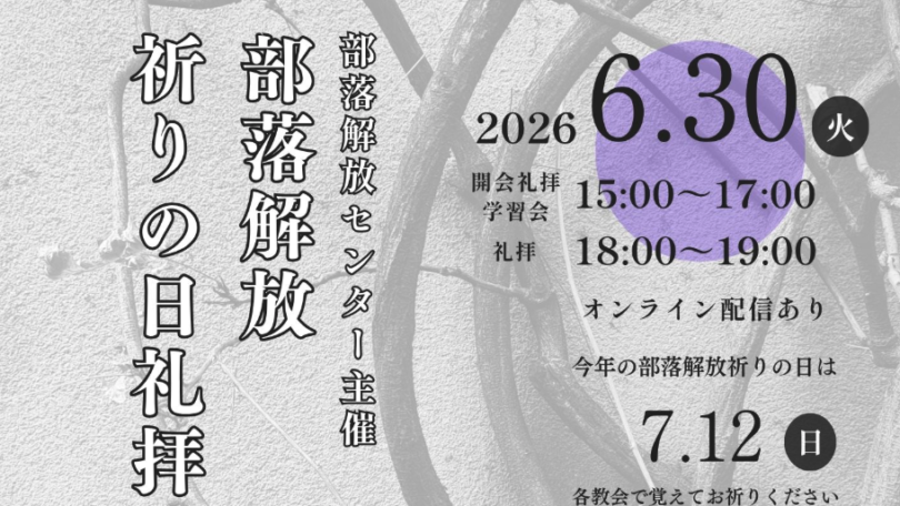 <blockquote class="wp-embedded-content" data-secret="uuZ7O9iI0o"><a href="https://blc-uccj.org/event/2026inorinohi/">2026年 部落解放祈りの日礼拝</a></blockquote><iframe sandbox="allow-scripts" security="restricted" src="https://blc-uccj.org/event/2026inorinohi/embed/#?secret=uuZ7O9iI0o" width="600" height="400" title="“2026年 部落解放祈りの日礼拝” — 部落解放センター" data-secret="uuZ7O9iI0o" frameborder="0" marginwidth="0" marginheight="0" scrolling="no" class="wp-embedded-content"></iframe><script type="text/javascript"> /* <![CDATA[ */ /*! This file is auto-generated */ !function(d,l){"use strict";l.querySelector&&d.addEventListener&&"undefined"!=typeof URL&&(d.wp=d.wp||{},d.wp.receiveEmbedMessage||(d.wp.receiveEmbedMessage=function(e){var t=e.data;if((t||t.secret||t.message||t.value)&&!/[^a-zA-Z0-9]/.test(t.secret)){for(var s,r,n,a=l.querySelectorAll('iframe[data-secret="'+t.secret+'"]'),o=l.querySelectorAll('blockquote[data-secret="'+t.secret+'"]'),c=new RegExp("^https?:$","i"),i=0;i<o.length;i++)o[i].style.display="none";for(i=0;i<a.length;i++)s=a[i],e.source===s.contentWindow&&(s.removeAttribute("style"),"height"===t.message?(1e3<(r=parseInt(t.value,10))?r=1e3:~~r<200&&(r=200),s.height=r):"link"===t.message&&(r=new URL(s.getAttribute("src")),n=new URL(t.value),c.test(n.protocol))&&n.host===r.host&&l.activeElement===s&&(d.top.location.href=t.value))}},d.addEventListener("message",d.wp.receiveEmbedMessage,!1),l.addEventListener("DOMContentLoaded",function(){for(var e,t,s=l.querySelectorAll("iframe.wp-embedded-content"),r=0;r<s.length;r++)(t=(e=s[r]).getAttribute("data-secret"))||(t=Math.random().toString(36).substring(2,12),e.src+="#?secret="+t,e.setAttribute("data-secret",t)),e.contentWindow.postMessage({message:"ready",secret:t},"*")},!1)))}(window,document); //# sourceURL=https://blc-uccj.org/wp-includes/js/wp-embed.min.js /* ]]> */ </script>